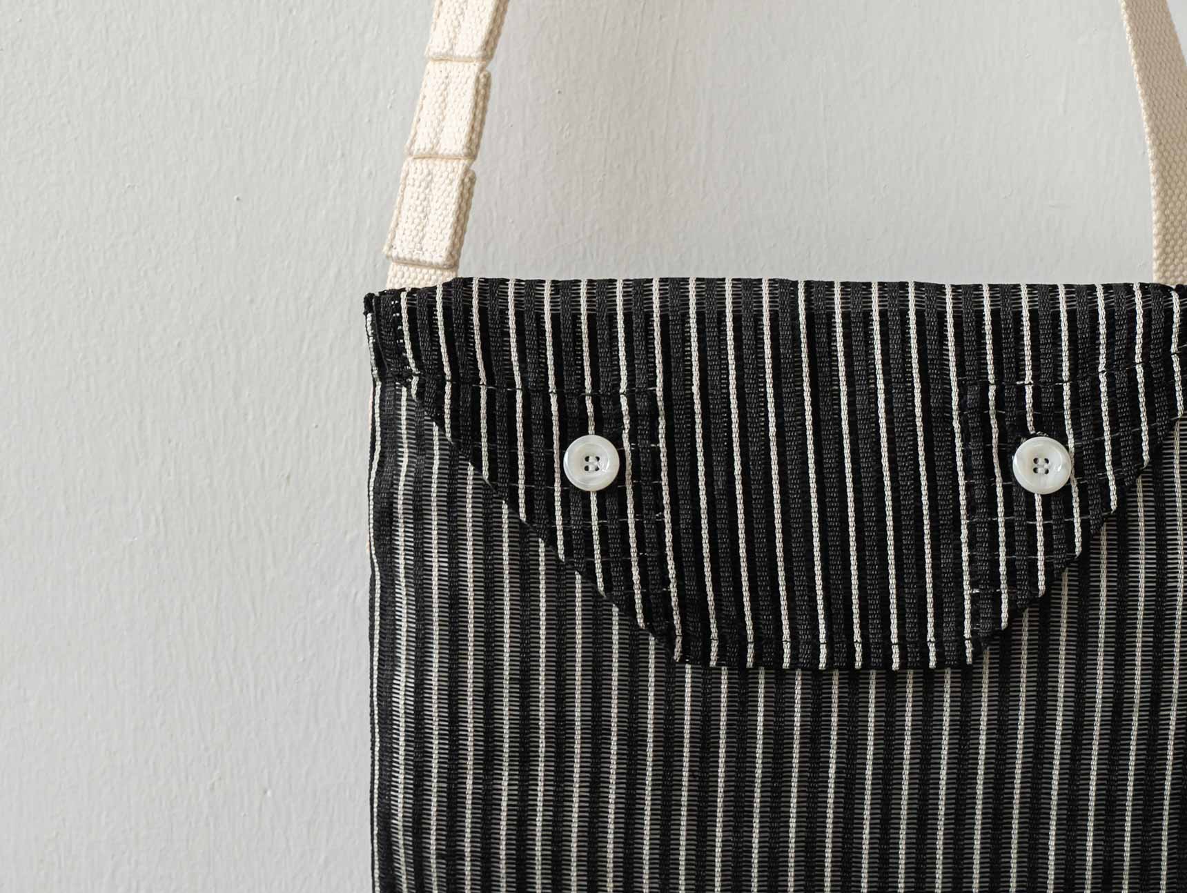 Aa GRADE creates curated everyday objects with minimal waste. This eco-luxury handbag is crafted from authentic vintage Japanese obi fabric, inspired by traditional kimonos and vintage military gas mask bags. Each piece is unique, repurposing 4m Obi belts into functional art.