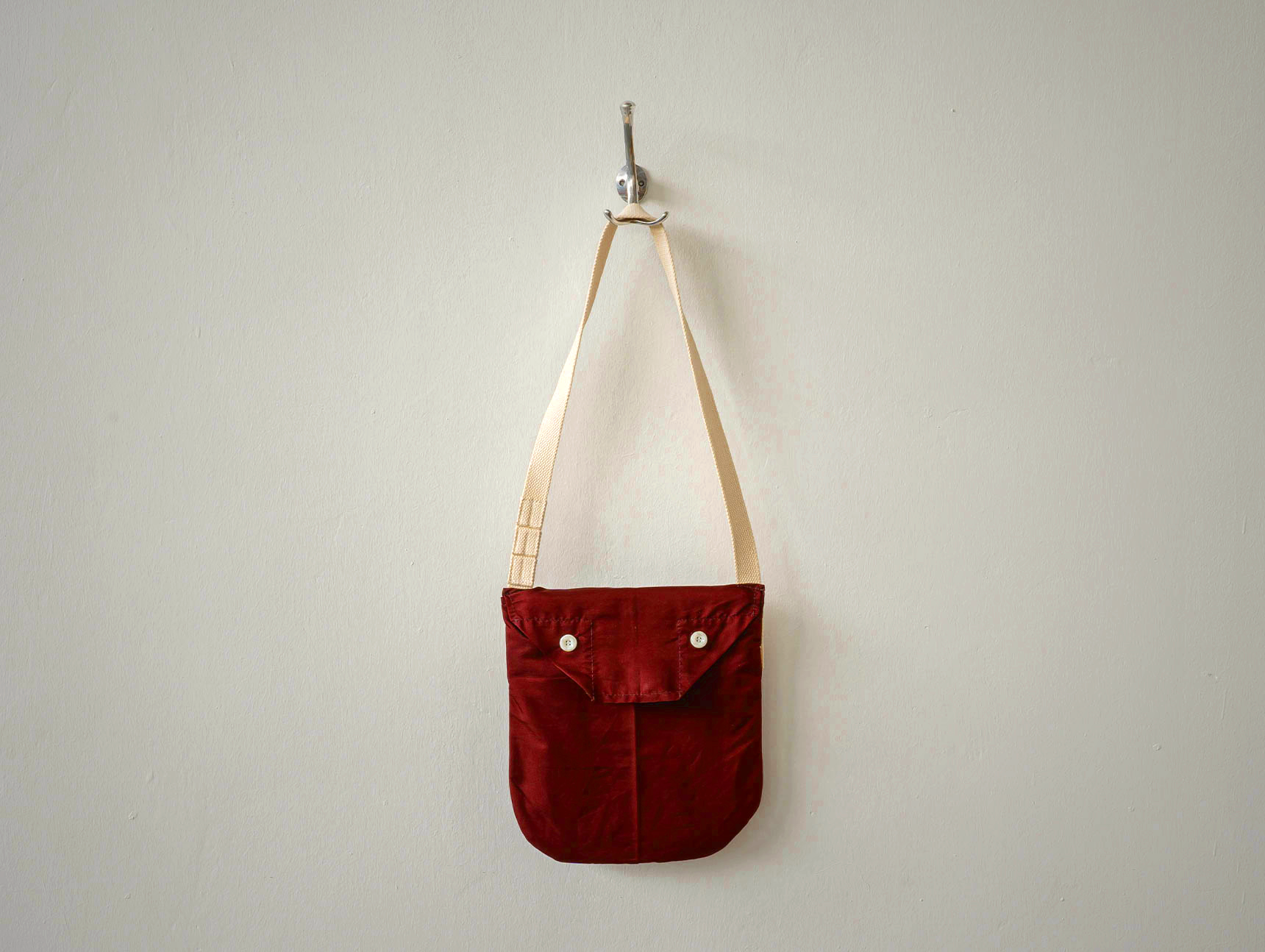Aa GRADE presents a curated collection of everyday household objects designed for modern living. This unique Sienna bag is handcrafted from vintage Japanese obi fabric, repurposed from traditional kimonos with minimal cutting to preserve the fabric’s integrity. Inspired by vintage military gas mask bags, it features a spacious interior and adjustable strap.