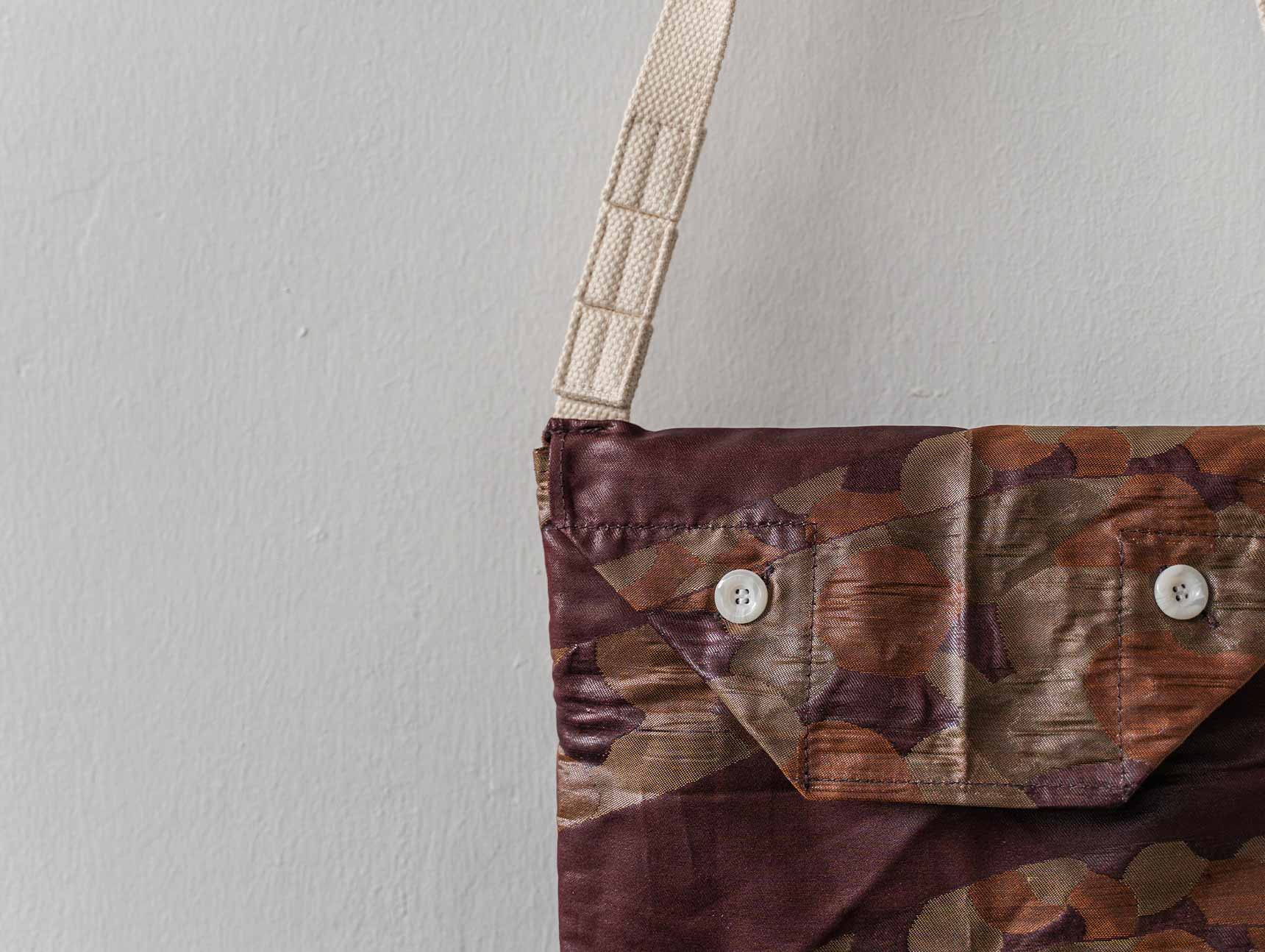 Handcrafted Aa Grade Obi Bag made from vintage Japanese kimono fabric. Inspired by traditional kimonos and military design, this sustainable handbag combines heritage with modern style.