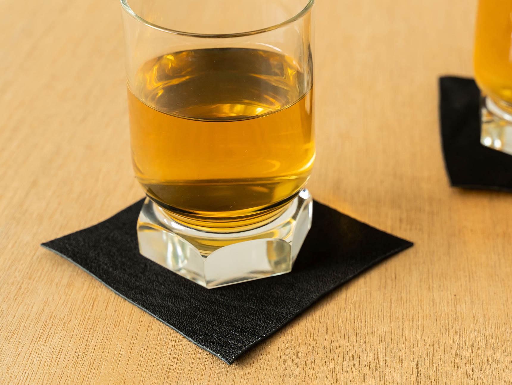 These premium leather coasters are crafted from top grain leather off-cuts, ensuring zero waste. Due to the natural characteristics of the leather, each coaster features unique textures—preferred over corrected or stamped alternatives.