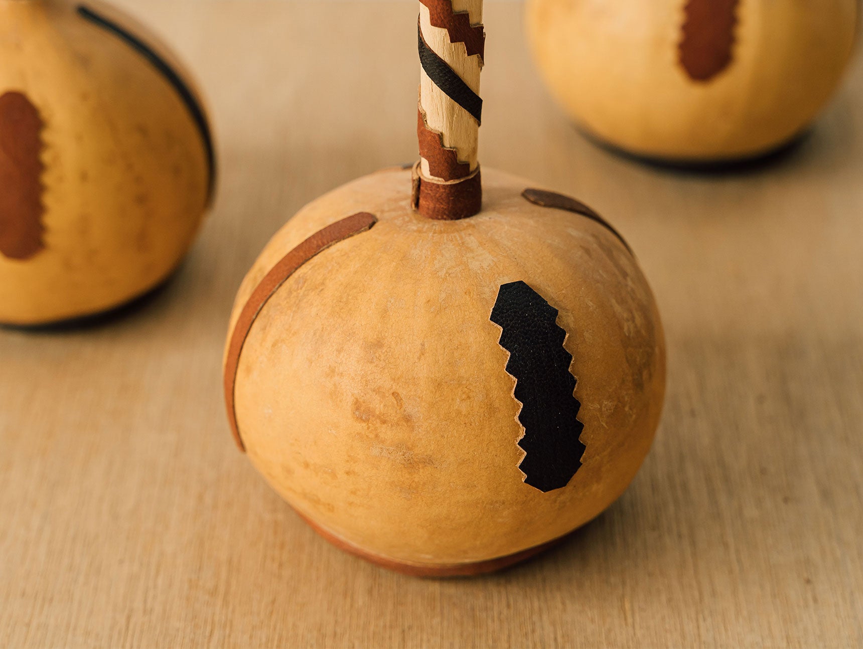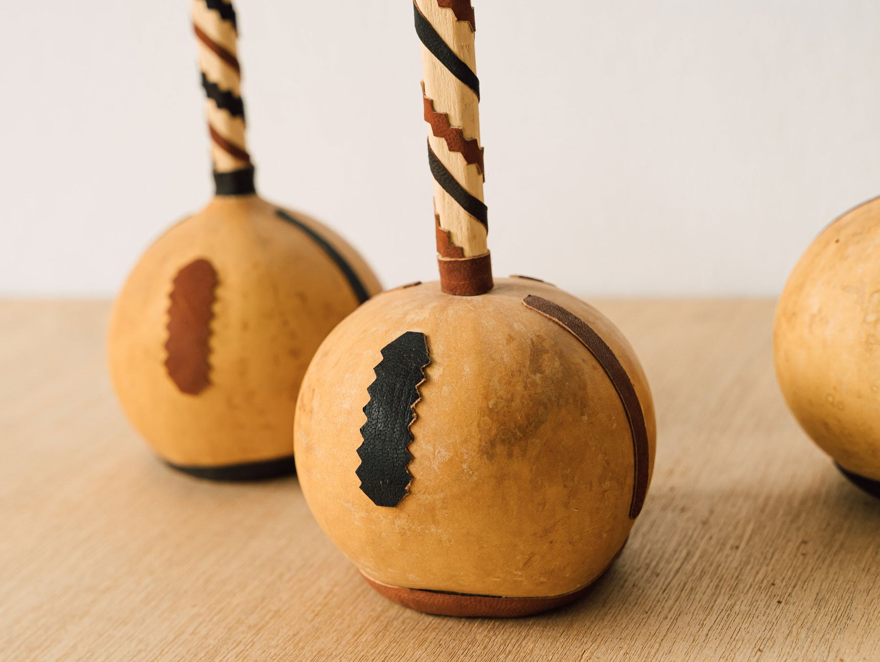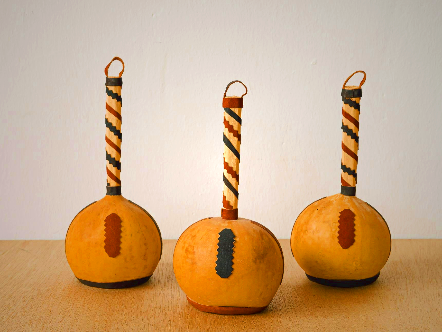 Discover authentic African Gourd Maracas, handcrafted from natural gourds and seeds. These decorative percussion instruments are perfect for cultural collections and add an earthy, sculptural touch to any space. Mint condition with traditional craftsmanship from Kanagawa.
