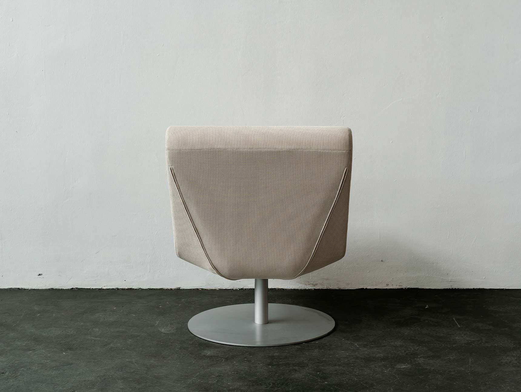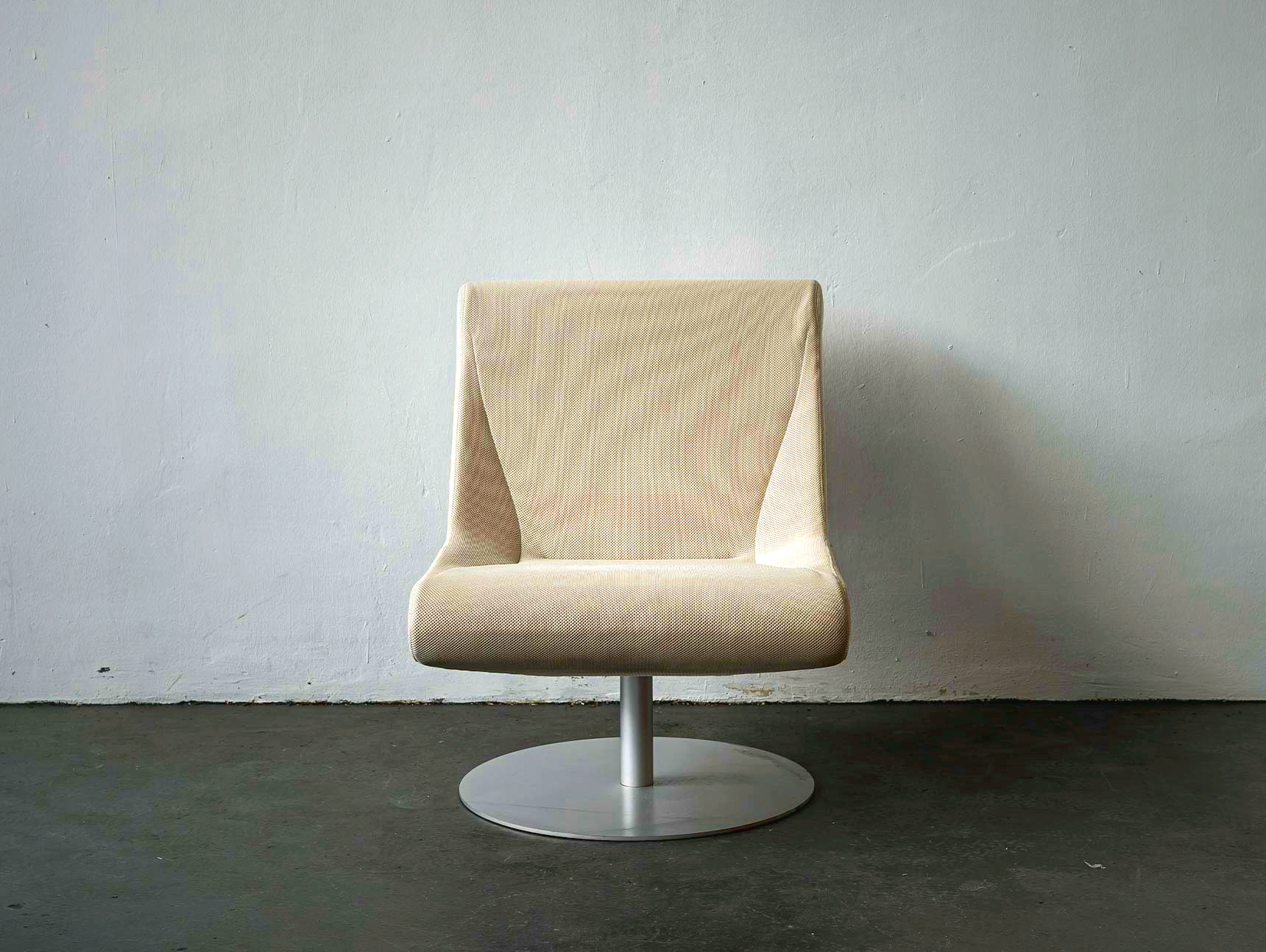 Experience luxury with the Cassina IXC Boomerang Plus Swivel Lounge Chair, designed by Gwenael Nicolas. This modern chair features a molded polyurethane foam seat, durable steel frame, and high-quality polyester fabric. Perfect for contemporary living rooms, home theaters, and lounge spaces. Sourced from Kanagawa, Japan, this mint-condition chair combines style and comfort.