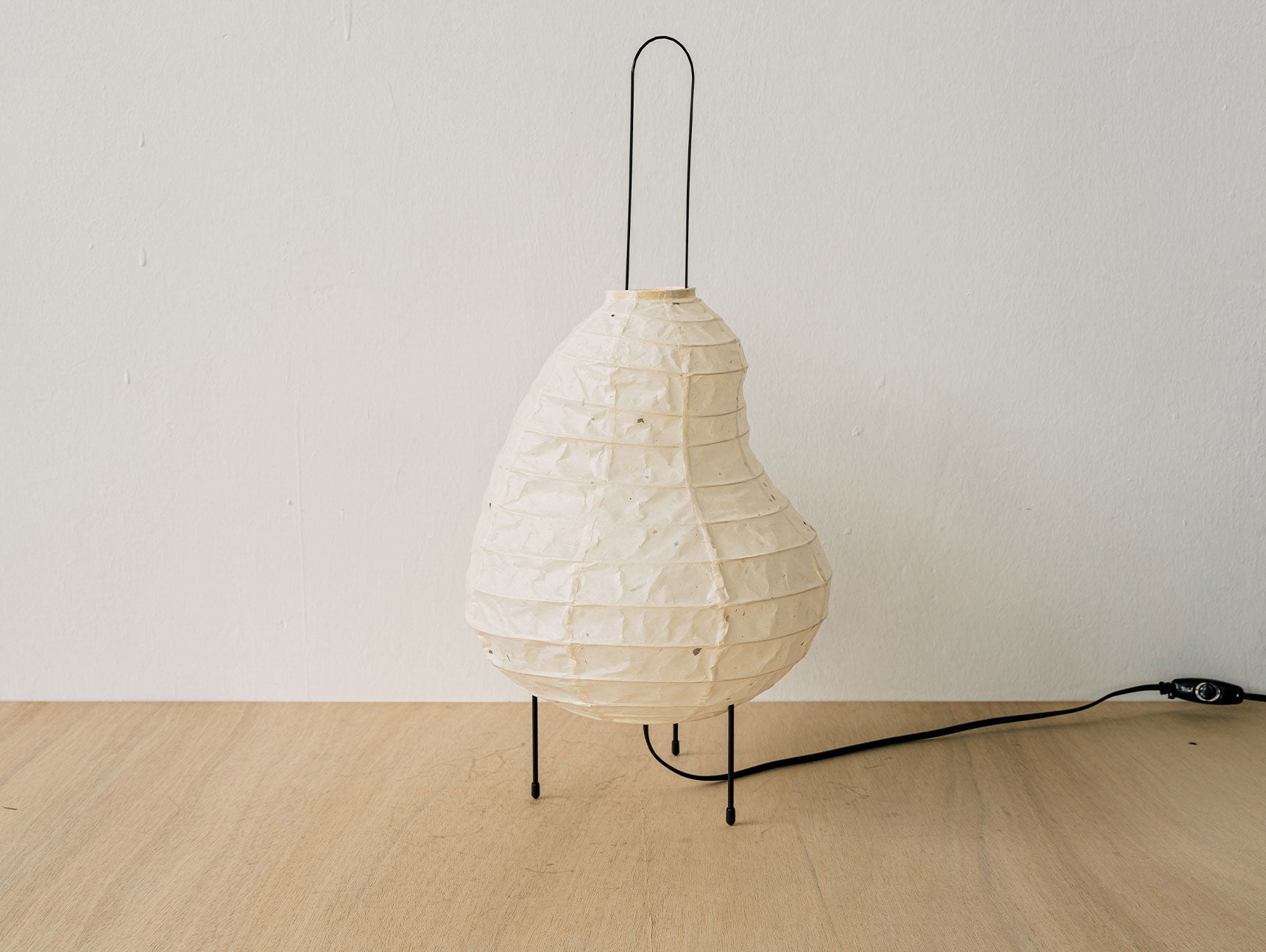 Originally designed with a black cord, additional cable color options and custom finishes are available at our showroom. This authentic Japanese lighting piece measures Ø26 x H56 cm and showcases the renowned craftsmanship that has made Gifu lanterns famous worldwide through Isamu Noguchi’s Akari light sculptures.