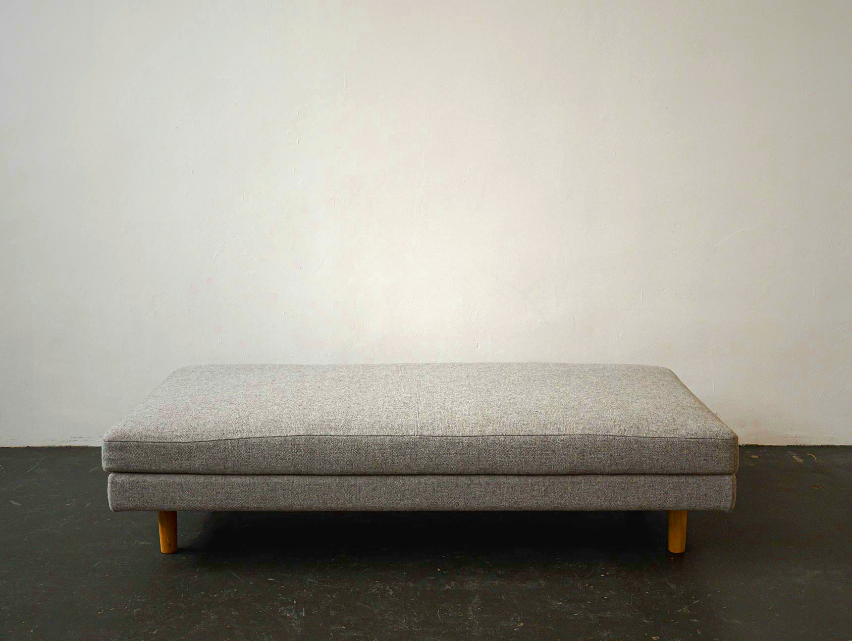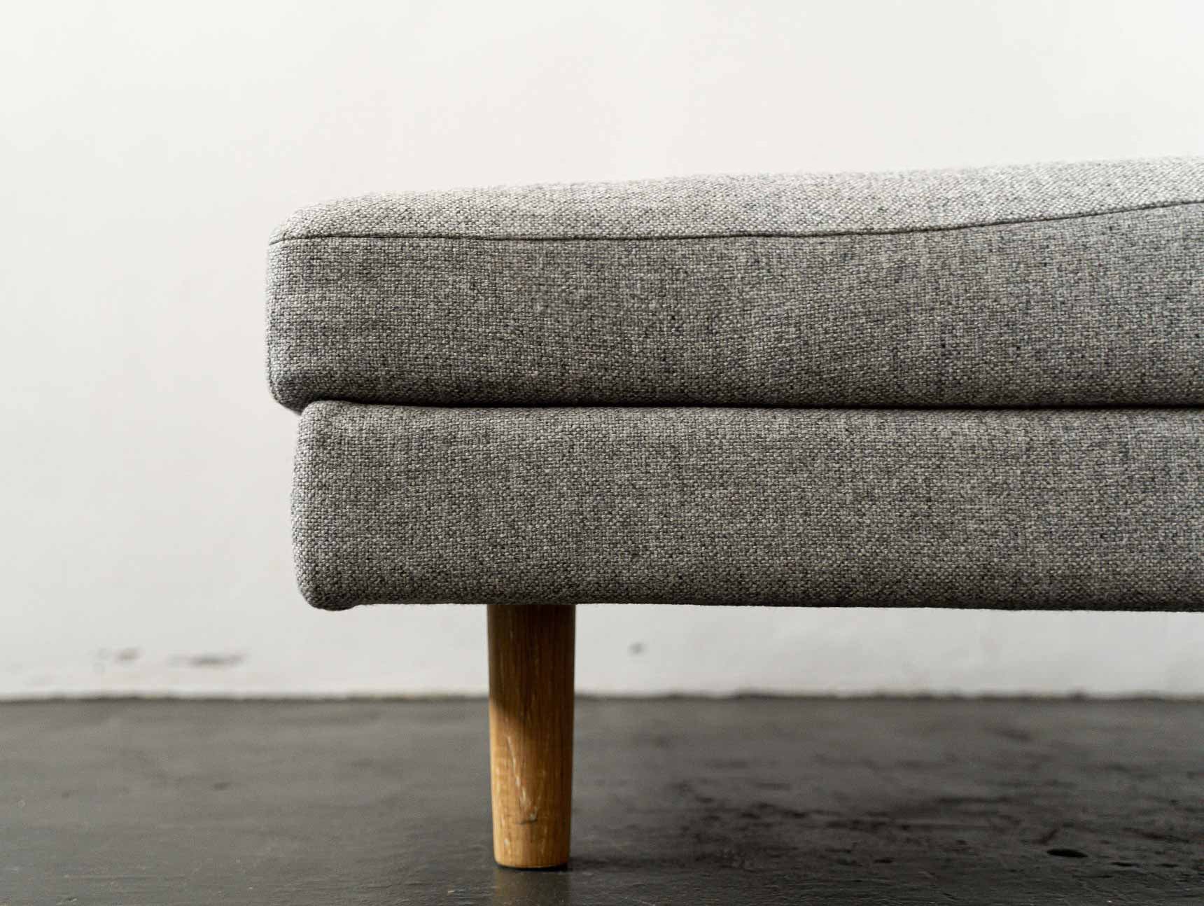 The Maruni Hiroshima Daybed, designed by Naoto Fukasawa, is a versatile piece from the renowned Hiroshima Collection. This multi-functional ottoman features a large upholstered surface, perfect as a daybed or communal table. Crafted with oak wood and premium fabric, it offers both durability and comfort. Removable cushion and covers allow for easy cleaning. Dimensions: L170 x D85 x H39 cm. Mint condition, sourced from Chiba.
