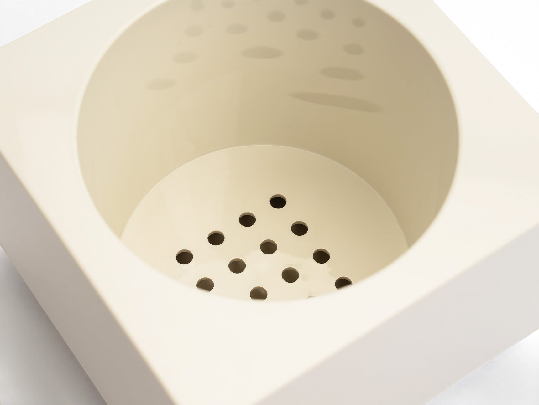 The Marutomi Pot Cubic is a limited-edition plant pot designed by Masanori Umeda in collaboration with Marutomi Lacquerware. Crafted from uncoated ABS resin with an integrated saucer, it blends modern design with traditional Japanese craftsmanship. Influenced by the Memphis Group, this avant-garde piece reflects timeless elegance and cultural heritage. Dimensions: L12.5 x D12.5 x H10.5 cm, Mouth – Ø10 cm. Made in Fukui, Japan.