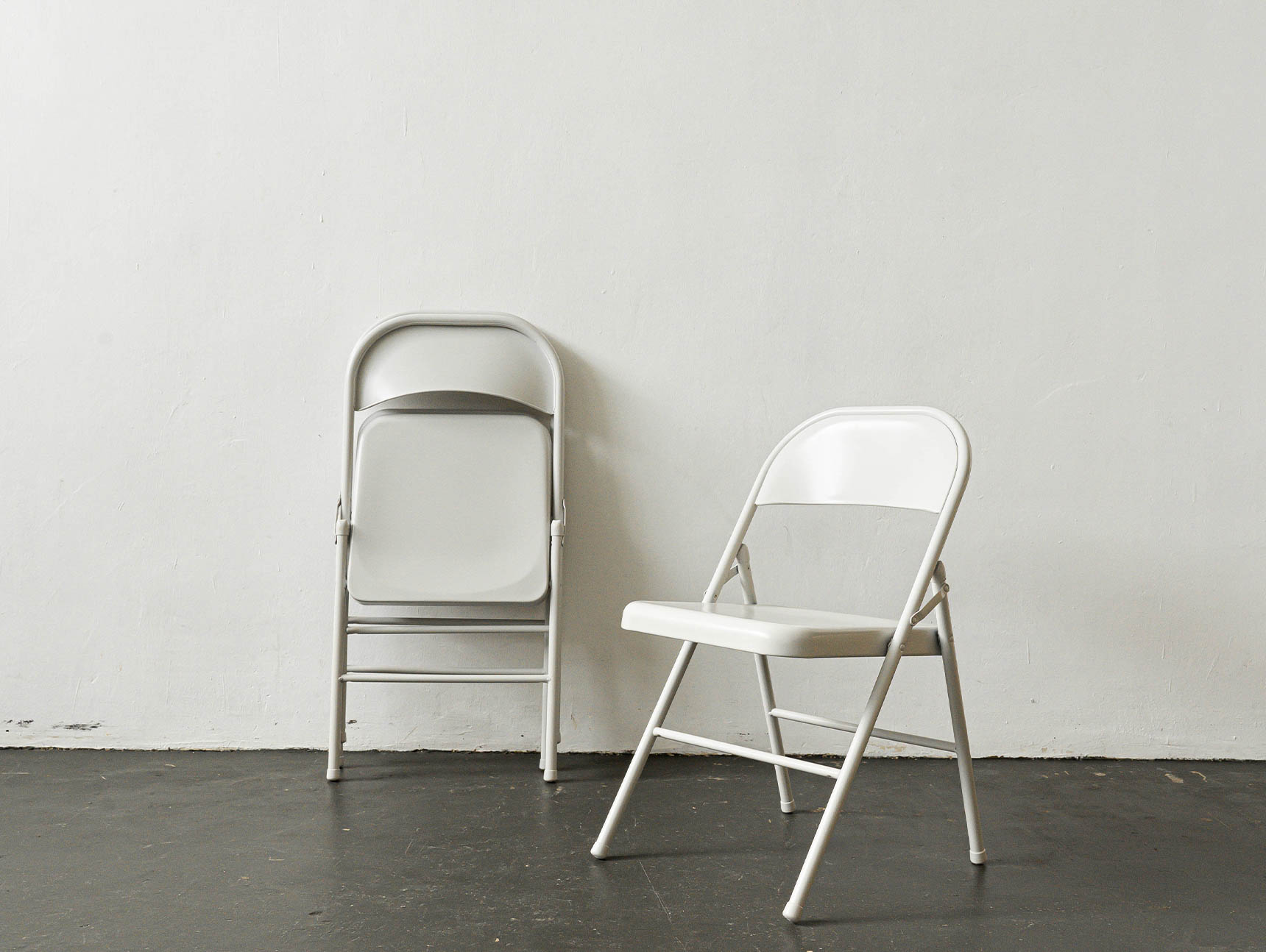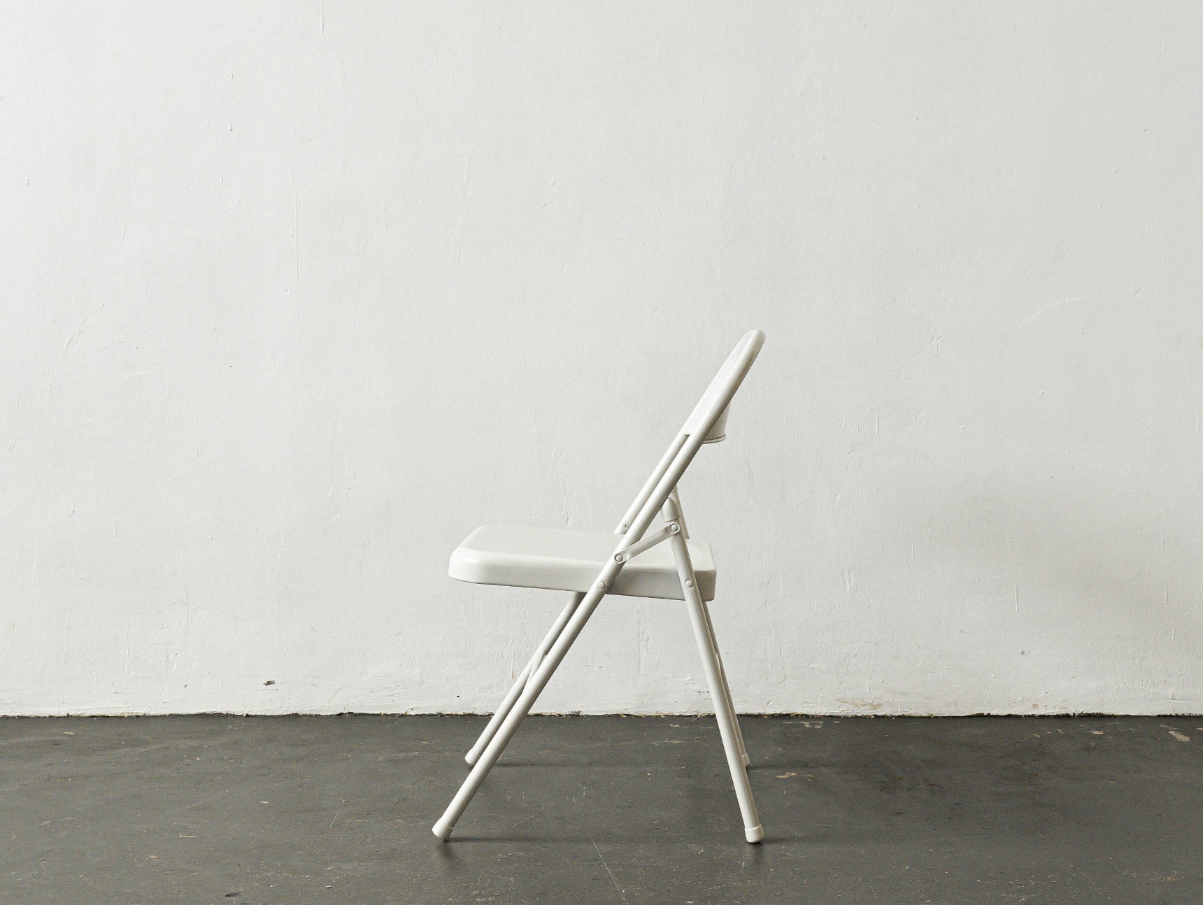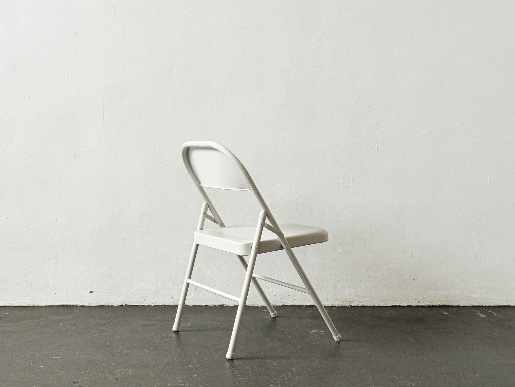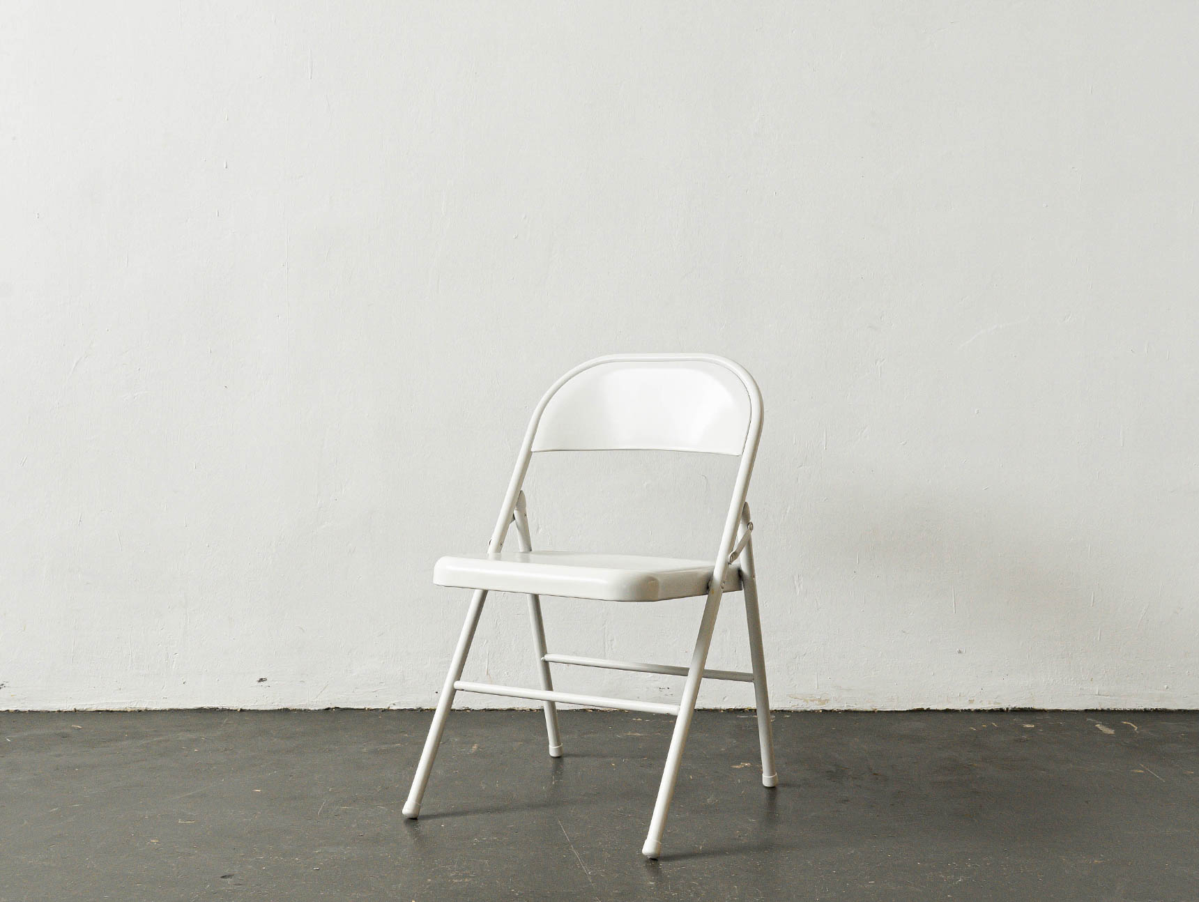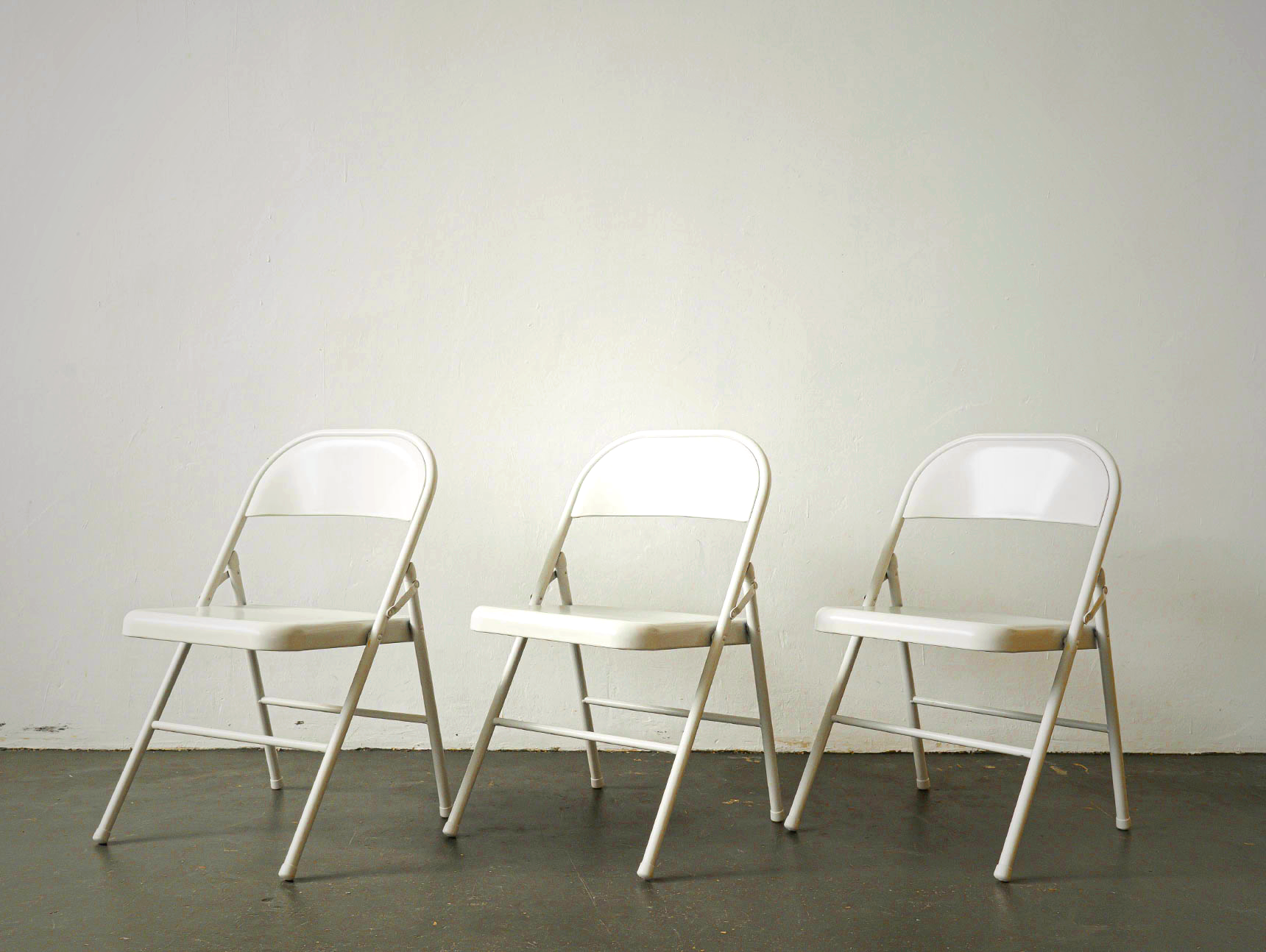 A family-owned business since 1959, MECO created a line of steel folding chairs and tables in 1971 to complement their acclaimed barbecue grills, making them a staple in American households. These off-white folding chairs are crafted from full hard-temper tubular steel with a triple-welded rear leg brace for enhanced stability and strength. Easy to set up and perfect for both indoor and outdoor gatherings, these mint-condition chairs are sourced from Shizuoka and sold individually. Material: Steel. Dimensions: L46 x D49 x H76 x SH43 cm.