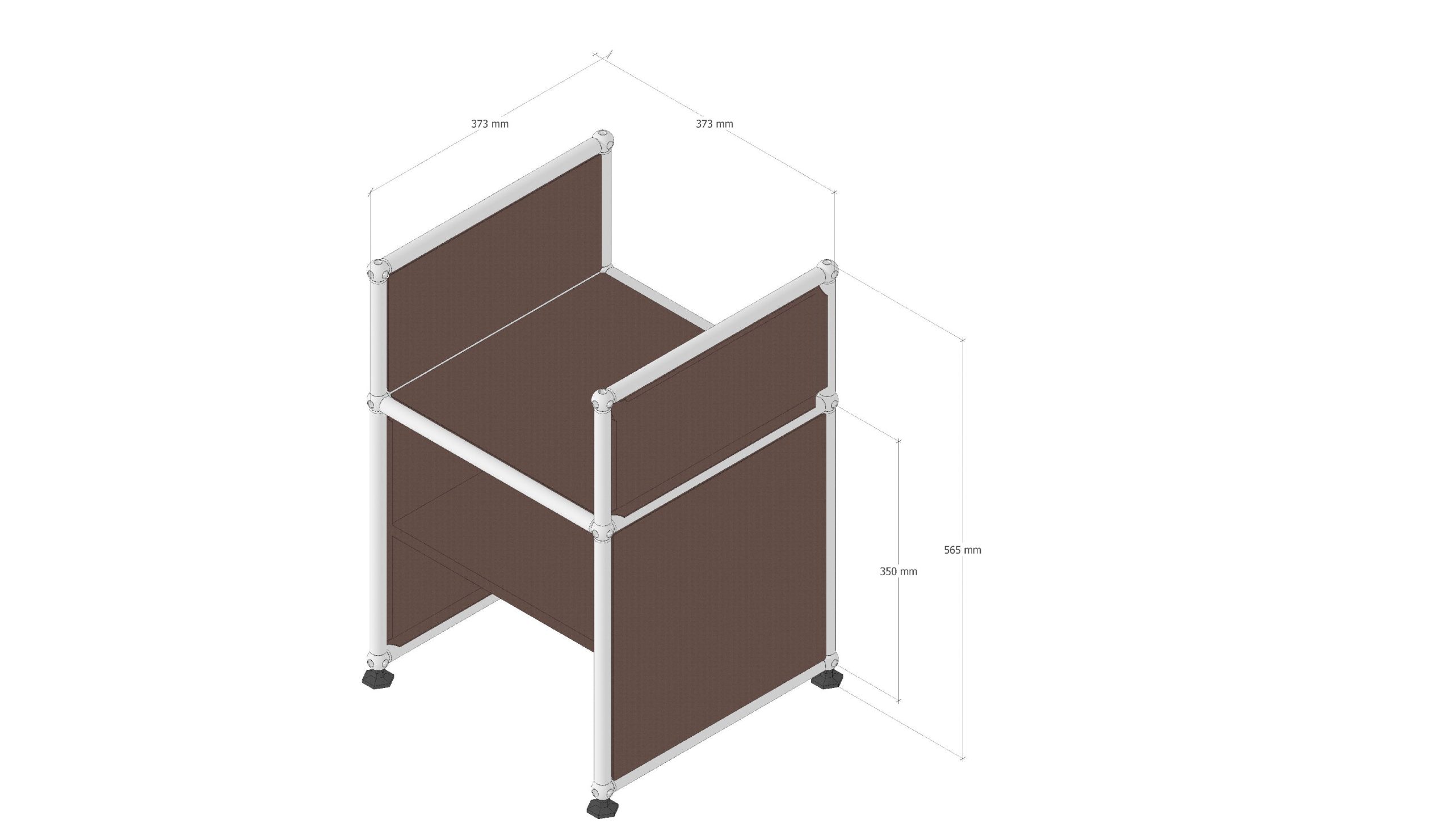 The MOD Judd F chair by Aa Furniture features a modular design inspired by Donald Judd. It combines preowned USM Haller parts sourced from Japan with Konektra Germany compatible panels and components. Since USM Haller does not offer spare parts, we collaborate with Konektra Germany to provide specific parts and brand-new panels. This chair pays homage to the iconic designer Donald Judd and offers customizable configurations to suit your space. Dimensions: L373 x D373 x H565 x SH390mm. We also offer in-house designs and fully customizable units for your home or office.