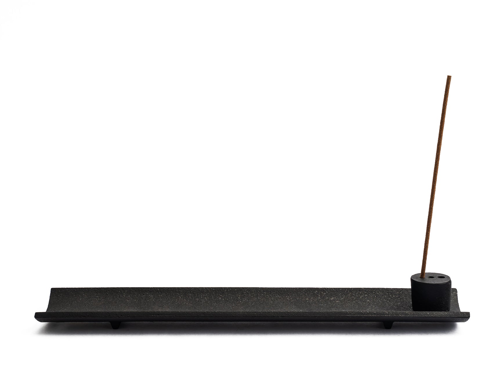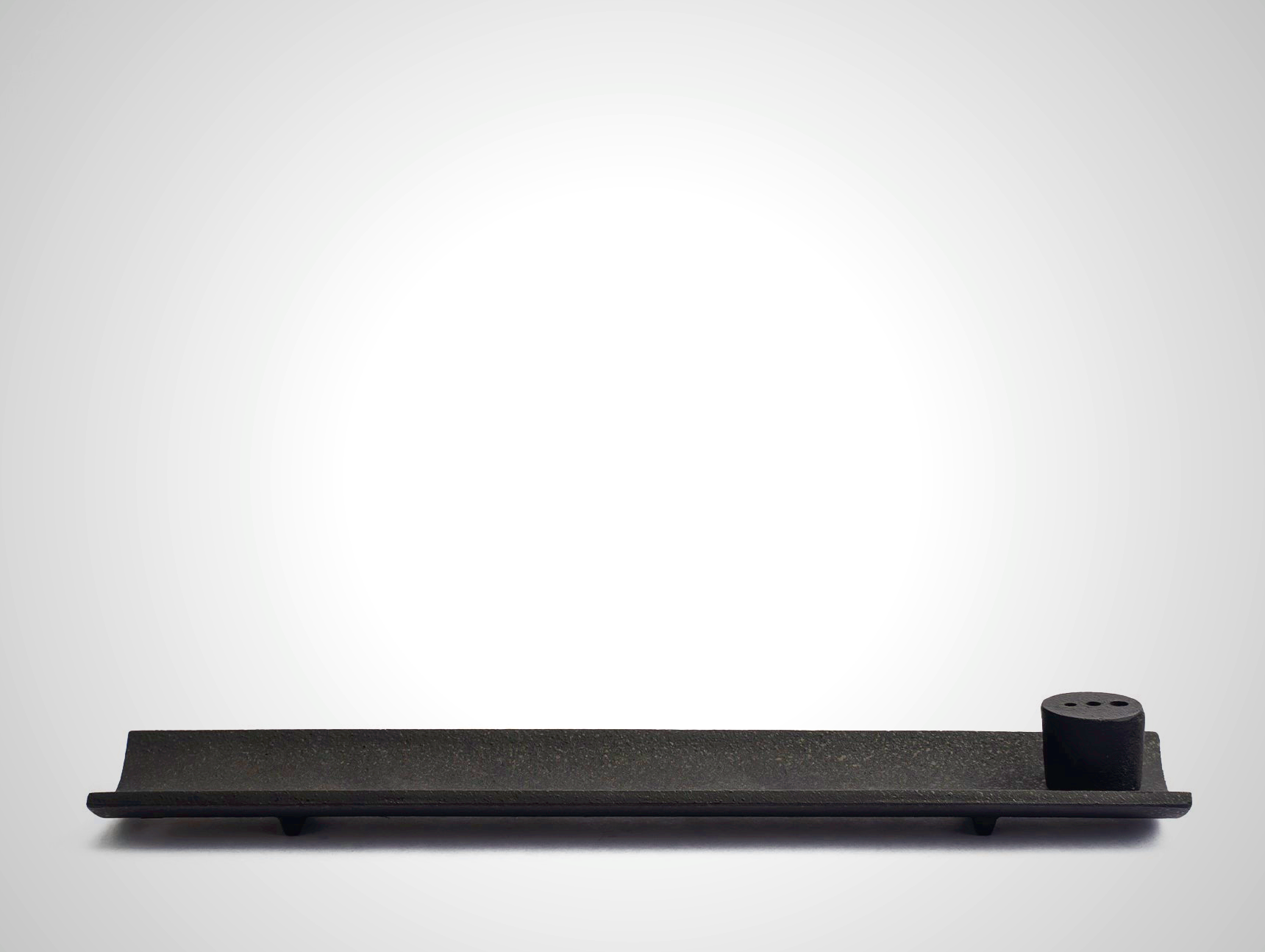 The Madoka Incense Stand by Chushin Kobo is crafted from traditional Nambu Tekki cast iron, originating from Iwate, Japan. Designed with a curved base to catch ashes and a perforated cylinder that fits most stick incense types, this stand combines functionality with elegant, modern aesthetics. Suitable for gifting or personal use, it enhances any space with its timeless design.