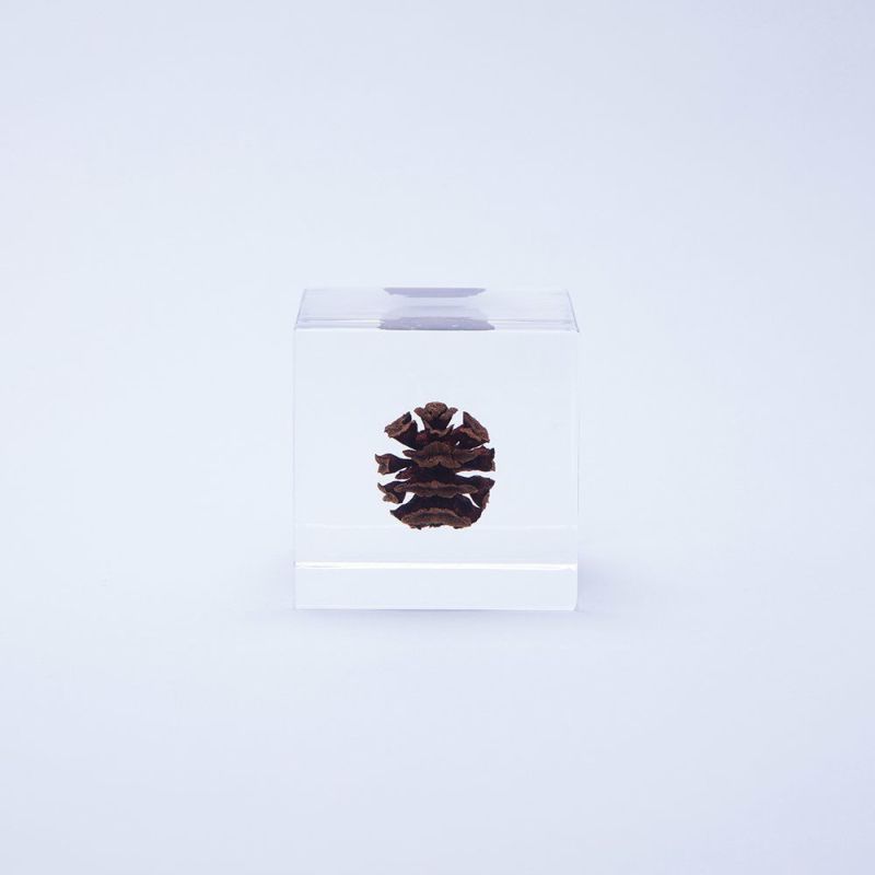 The Sola Cube – Dawn Redwood is a handcrafted decor piece from Kyoto that encapsulates a preserved dawn redwood specimen in crystal-clear acrylic resin. Known as a ‘living fossil,’ the dawn redwood was once thought extinct until rediscovered in 1941. This decorative cube reflects traditional Japanese values of nature appreciation and timeless beauty, making it a meaningful gift or desk accessory. Each cube is unique due to natural variations in plant material and handmade craftsmanship. Measures 4 x 4 x 4 cm. Avoid direct sunlight and high temperatures to preserve quality.