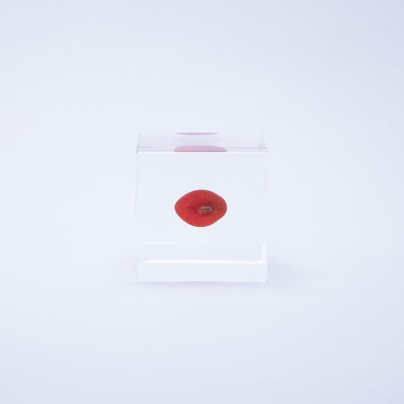 A handcrafted acrylic cube with a Huayruro seed, symbolizing protection and happiness. Made in Kyoto, perfect for mindful decor and thoughtful gifting.