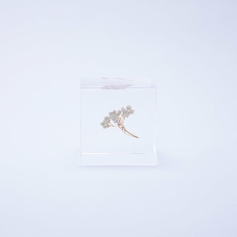 The Sola Cube Rice Flower is a beautifully preserved botanical artwork from Kyoto, Japan. Inspired by Shiro Kuramata’s design philosophy, each cube encases real dried plants in crystal-clear acrylic resin, capturing nature’s fleeting beauty. Perfect for desk decor, gifting, or meditation, this handmade piece reflects traditional Japanese craftsmanship and reverence for natural elements. Handle with care: avoid direct sunlight and high temperatures to preserve quality. Materials: Acrylic resin, dried plants. Dimensions: 4 x 4 x 4 cm.