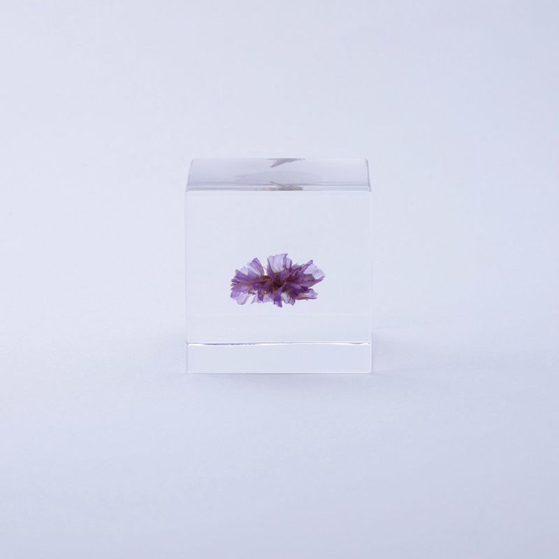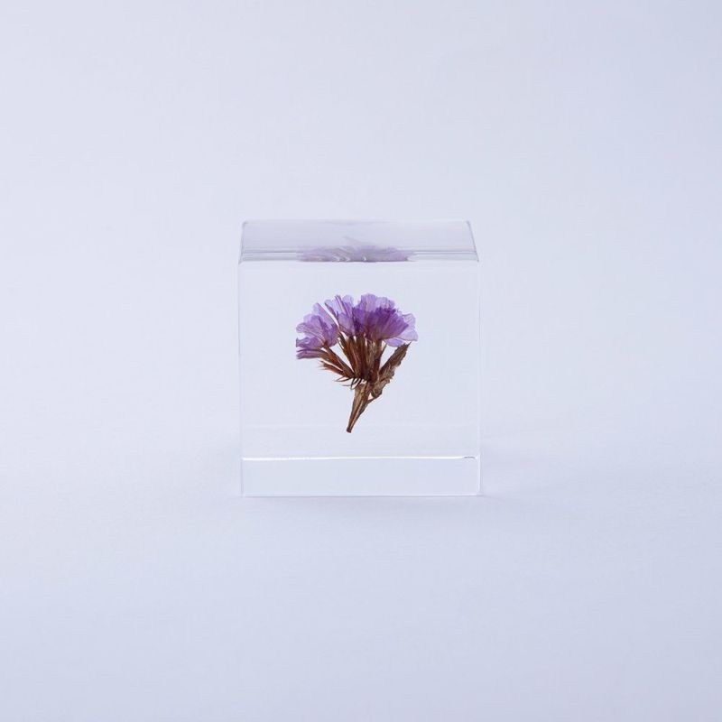 The Sola Cube Statice features a preserved statice flower encased in crystal-clear acrylic resin, showcasing nature’s beauty in a minimalist design. Inspired by Shiro Kuramata’s philosophy that enchantment is function, each cube is handcrafted in Kyoto using traditional Japanese techniques. Made from acrylic resin and dried plants, it measures 4x4x4 cm and offers a meditative glimpse into timeless natural elegance. Handle with care: avoid direct sunlight and high temperatures to preserve quality.