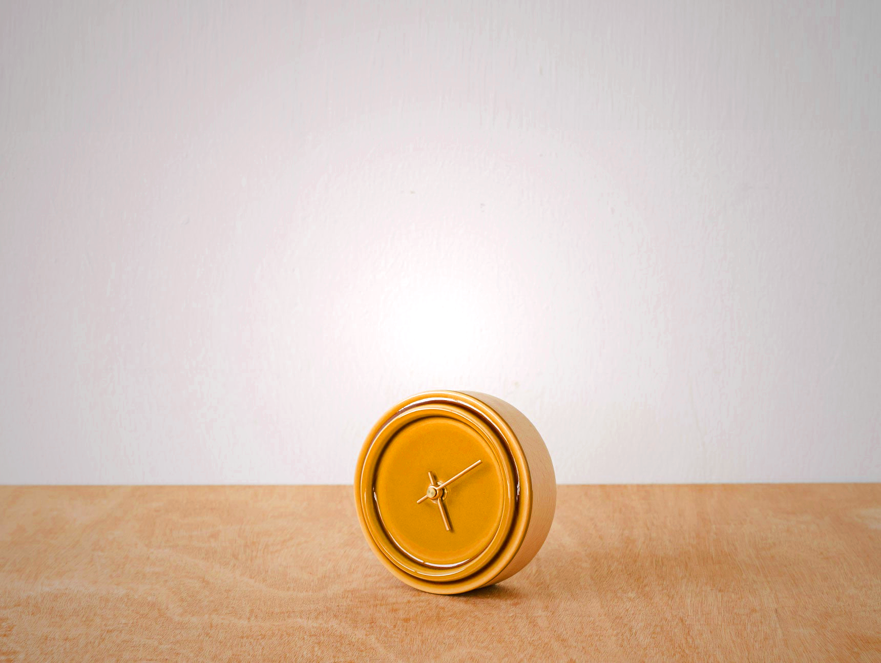 Since 1950, Sugy has specialized in tile manufacturing, producing unique ceramic pieces in Tajimi City, Japan. Each clock features a distinctive pale yellow glaze, making every item one-of-a-kind. Crafted from high-quality ceramic and aluminum, this two-way clock measures Ø11.5 × D4.5 cm and is sourced from Gifu, Japan.