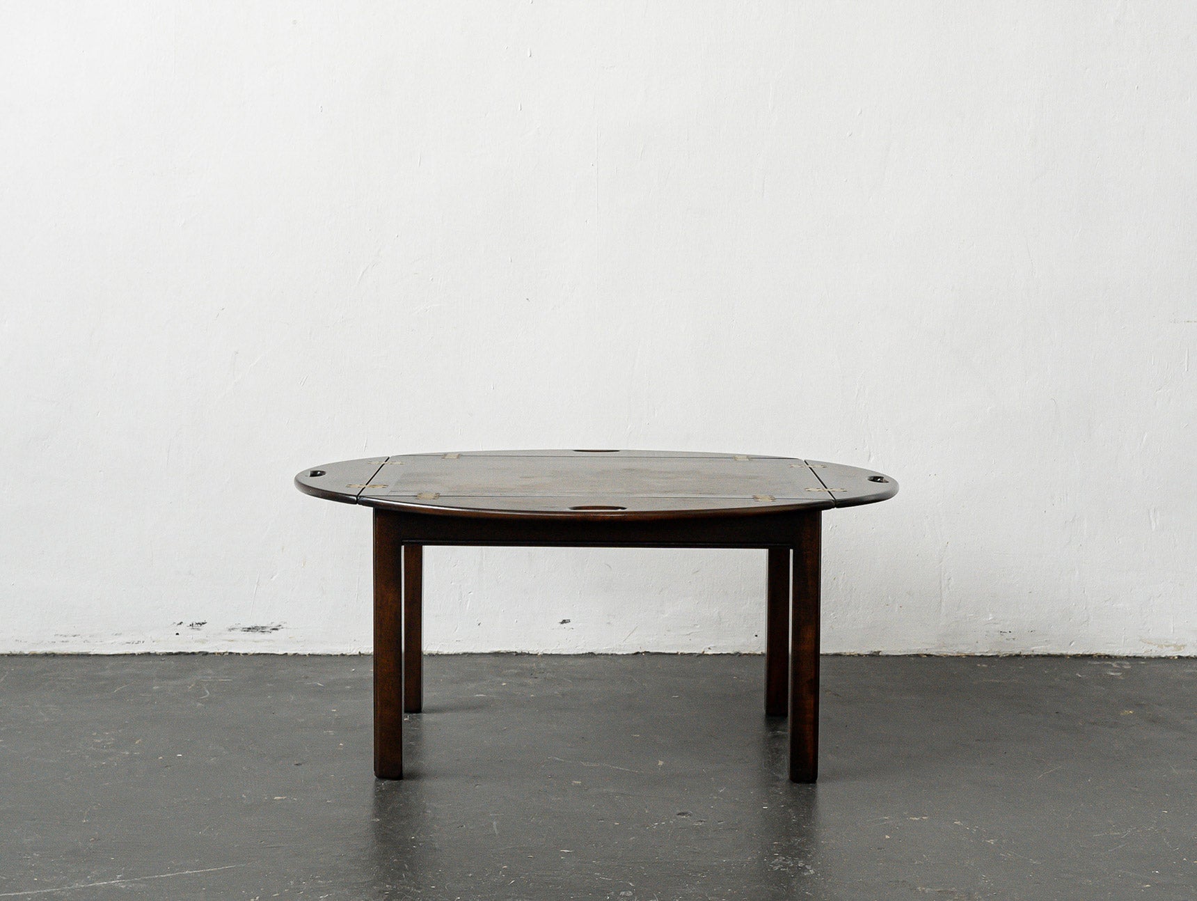 Discover the Vintage Mahogany Tray Living Table, a sophisticated 2-piece table crafted from premium rosewood. Designed with swivel edges that transform into a functional tray, perfect for entertaining. This mint-condition table from Shizuoka enhances any living space. Dimensions: Opened – L96 x D76 x H44 cm, Closed – L72 x D52 x H45 cm. Material: Rosewood.
